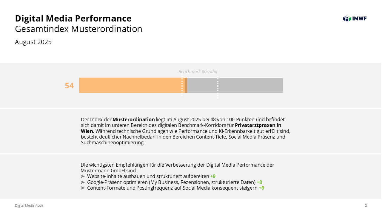 Sie erhalten klare Einschätzungen, Benchmarks und Empfehlungen der Expert:innen von IMWF und unserem Partner sonicboom: